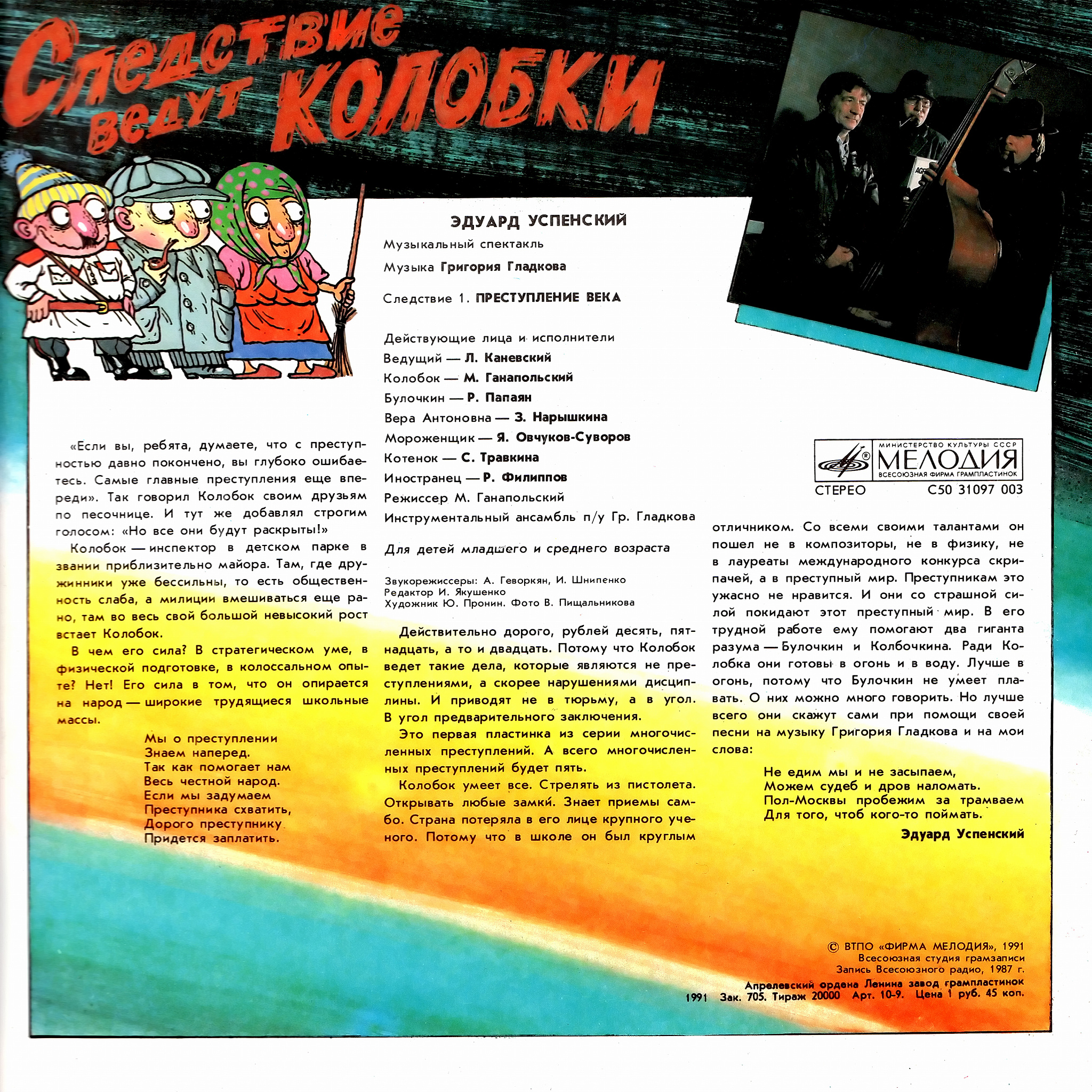 «Если вы, ребята, думаете, что с преступностью давно покончено, вы глубоко ошибаетесь. Самые главные преступления еще впереди». Так говорил Колобок своим друзьям по песочнице. И тут же добавлял строгим голосом: «Но все они будут раскрыты!»