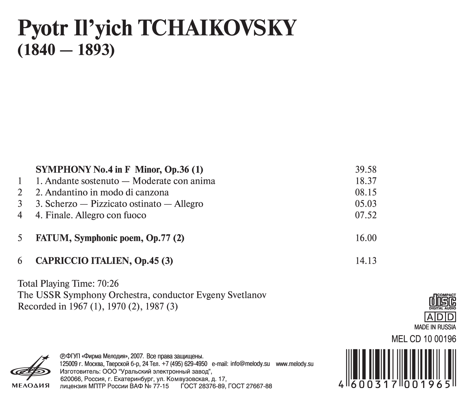 Петр Ильич Чайковский - Симфония № 4, Фатум, Итальянское каприччио