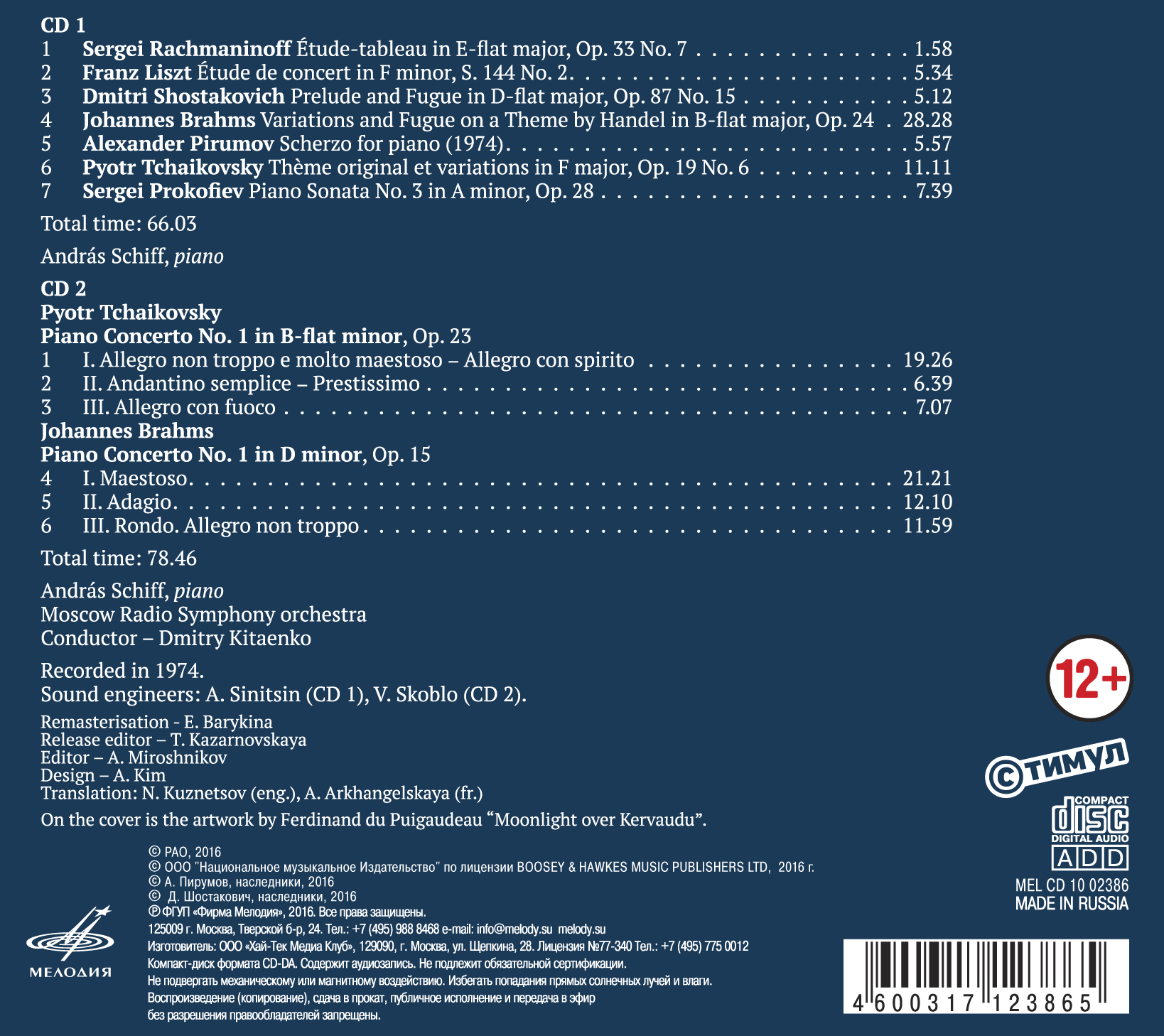 Фирма «Мелодия» предлагает вашему вниманию впервые опубликованные записи пианиста Андраша Шиффа с V Международного конкурса им. П.И. Чайковского (1974).