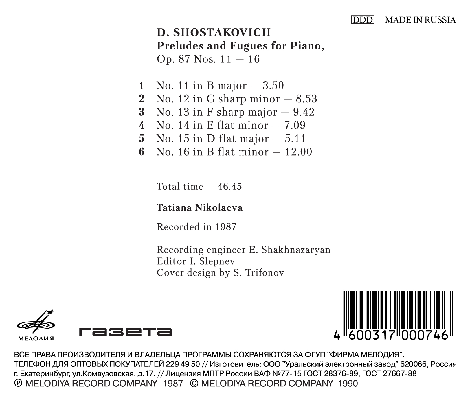 Прелюдии и фуги, соч. 87 по праву заняли теперь свое достойнейшее место в жизни. Они стали классикой. Я очень горда тем, что была первым интерпретатором цикла, что исполняю его целиком в два вечера, как и было задумано автором.