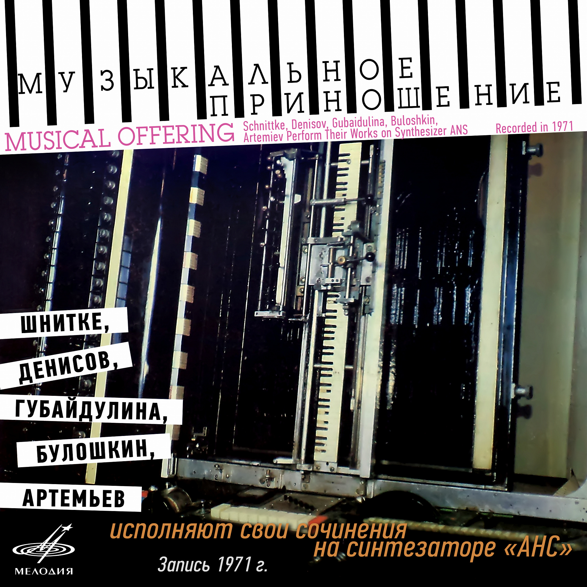 Однако история этого инструмента — о том, как его пытались из будущего исключить и справились с этой задачей. Последние десятилетия АНС, дважды чудом спасенный от уничтожения, доживает свой век в Музее Глинки среди музыкальных шкатулок, патефонов и прочих динозавров своей эпохи. Две эти пластинки — «АНС» и «Музыкальное Приношение» (да еще «Метаморфозы» Артемьева/Мартынова/Богданова для Synthi 100) — вот и все, что уцелело и сохранилось из сделанного в Экспериментальной студии электронной музыки, основанной Мурзиным в творческом НИИ-лаборатории, в которой когда-то собирались самые прогрессивные музыкальные умы Москвы, да и не только. О том, что это был за оазис свободомыслия в советской стране, можно почитать в недавнем интервью Мартынова на Colta.ru. К сожалению, Мурзин умер в 1970-м, не успев запустить АНС в серийное производство и реализовать всех своих идей, и постепенно советская бюрократия съела Студию электронной музыки. Революции, сопоставимой с появлением шёнберговской додекафонии, не случилось. Эти пластинки дают возможность пофантазировать о том, какой она могла бы быть.