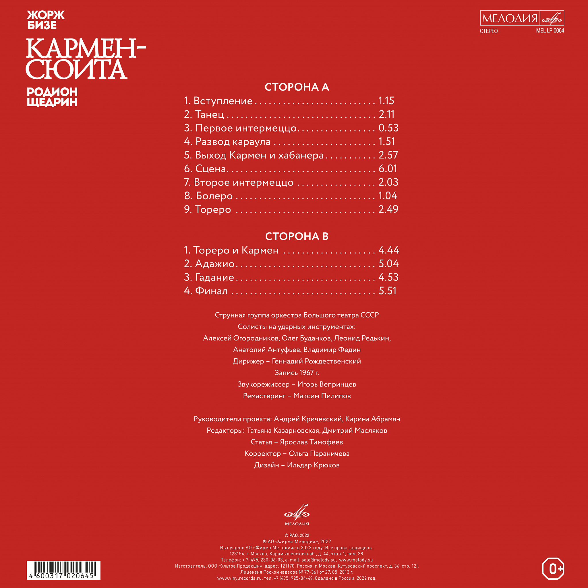 Эта запись «Кармен-сюиты» доступна в цифровом издании MEL CD 1001630.