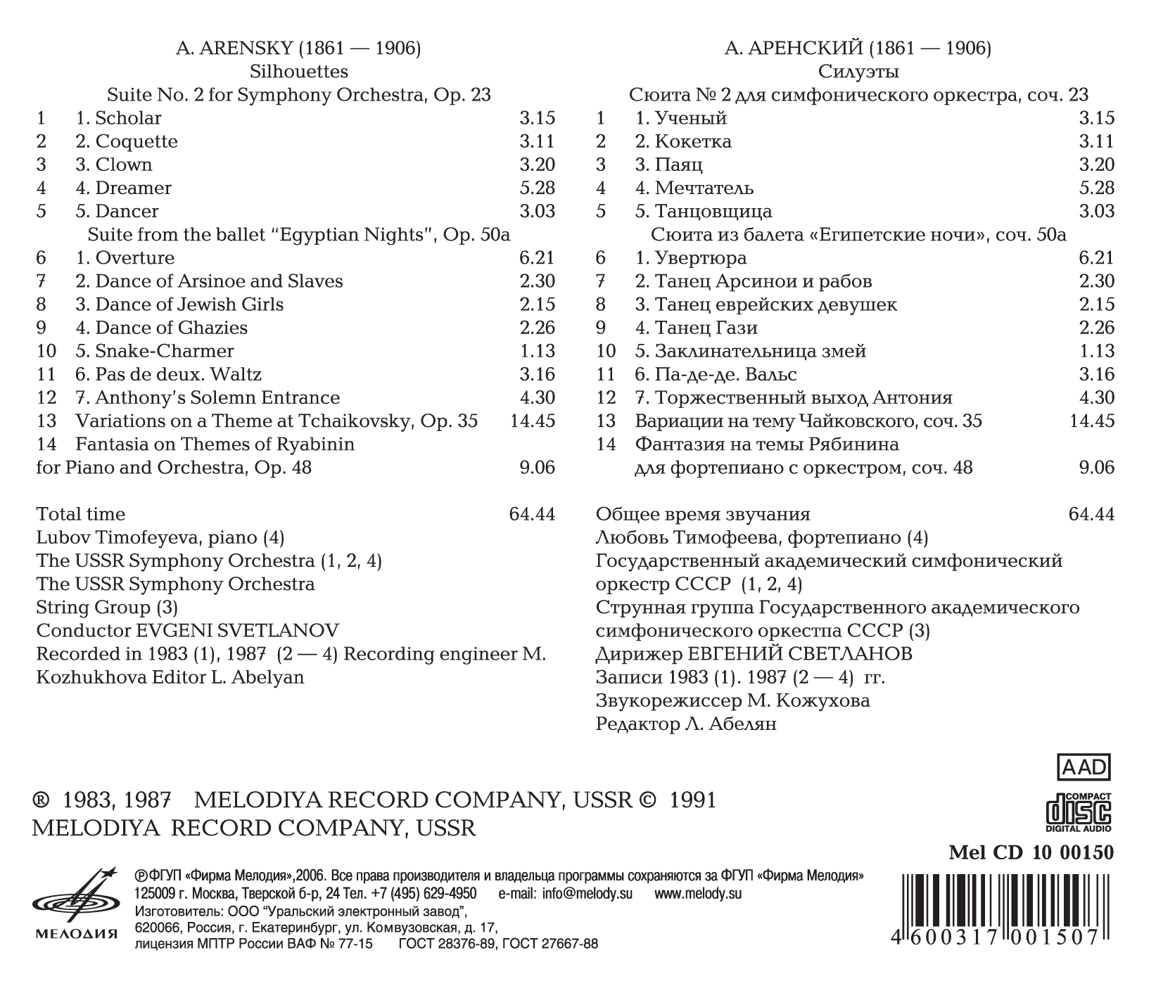 А. Аренский: Сюита "Силуэты" & Сюита из балета "Египетские ночи"