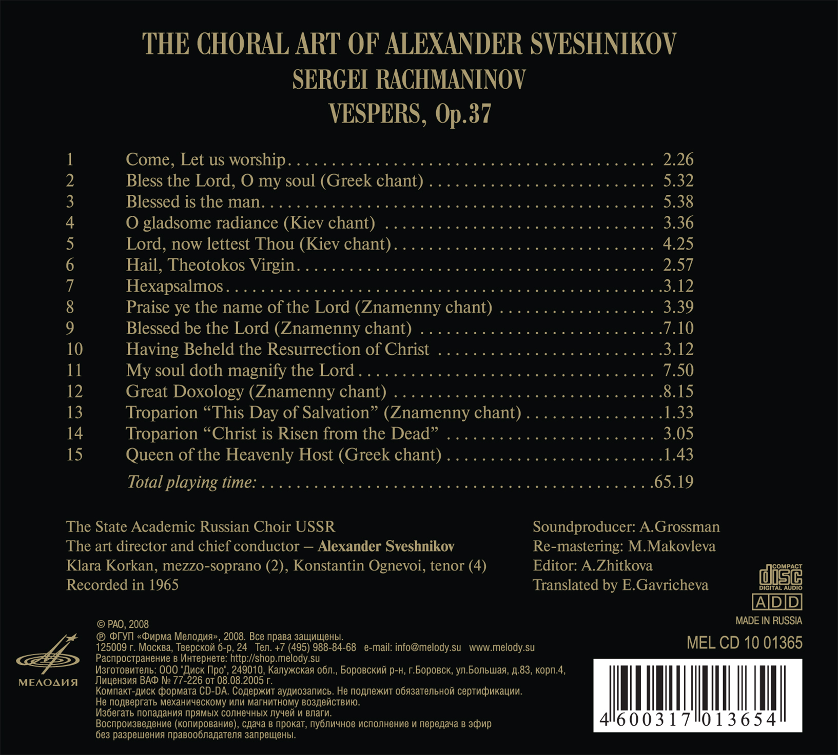 The primary distinction of Rachmaninoff's "All-Night Vigil" from the works of his predecessors (such as Tchaikovsky, Ippolitov-Ivanov, Panchenko, Rebikov, and others) was that he approached this composition in a completely different manner – not merely as an arrangement of borrowed material, but as a new, polyphonically developed music.