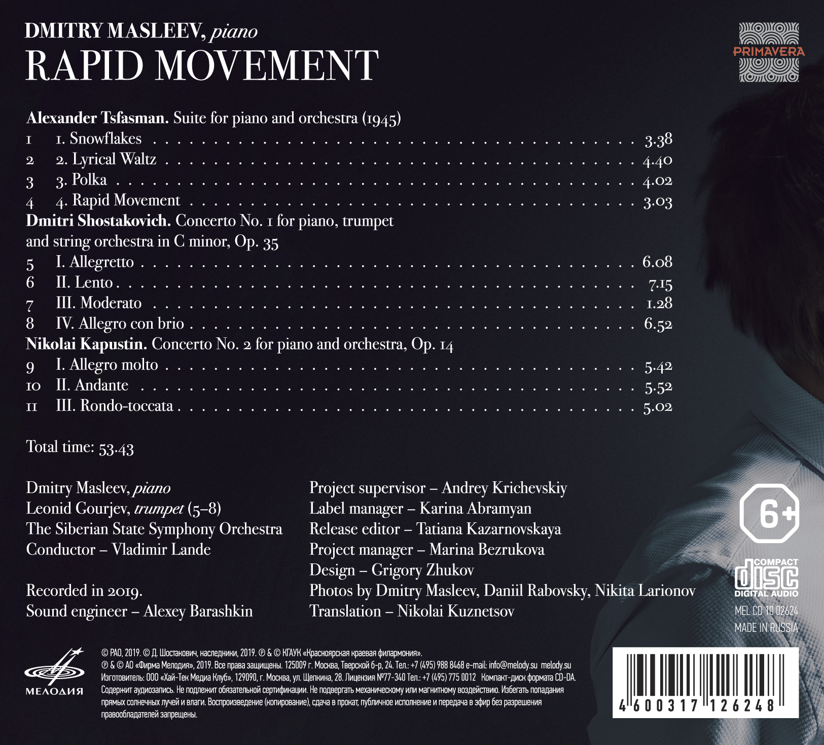 If Dmitry Masleev’s first album that went in the charts of Spotify Top Classical of 2017 and received the prestigious German Preis der Deutschen Schallplattenkritik included solo works by Scarlatti, Prokofiev and Shostakovich, this time the pianist performs with the Krasnoyarsk Philharmonic Society’s highly professional orchestra conducted by Vladimir Lande.