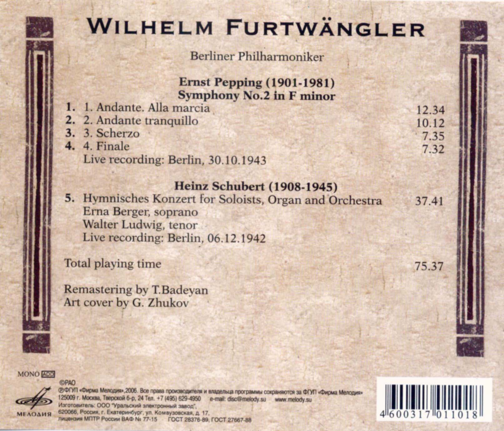 Pepping: Symphony No. 2 - Schubert: Hymnisches Konzert (Live)