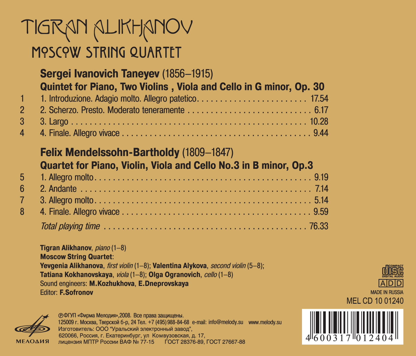 “The performing style of Tigran Alikhanov is notable for its seriousness, careful approach to the composer’s conception and a wealth of timbral sound on the piano. The virtuosic side of Alikhanov’s art stands on a very high level” remarks pianist Nikolai Petrov.