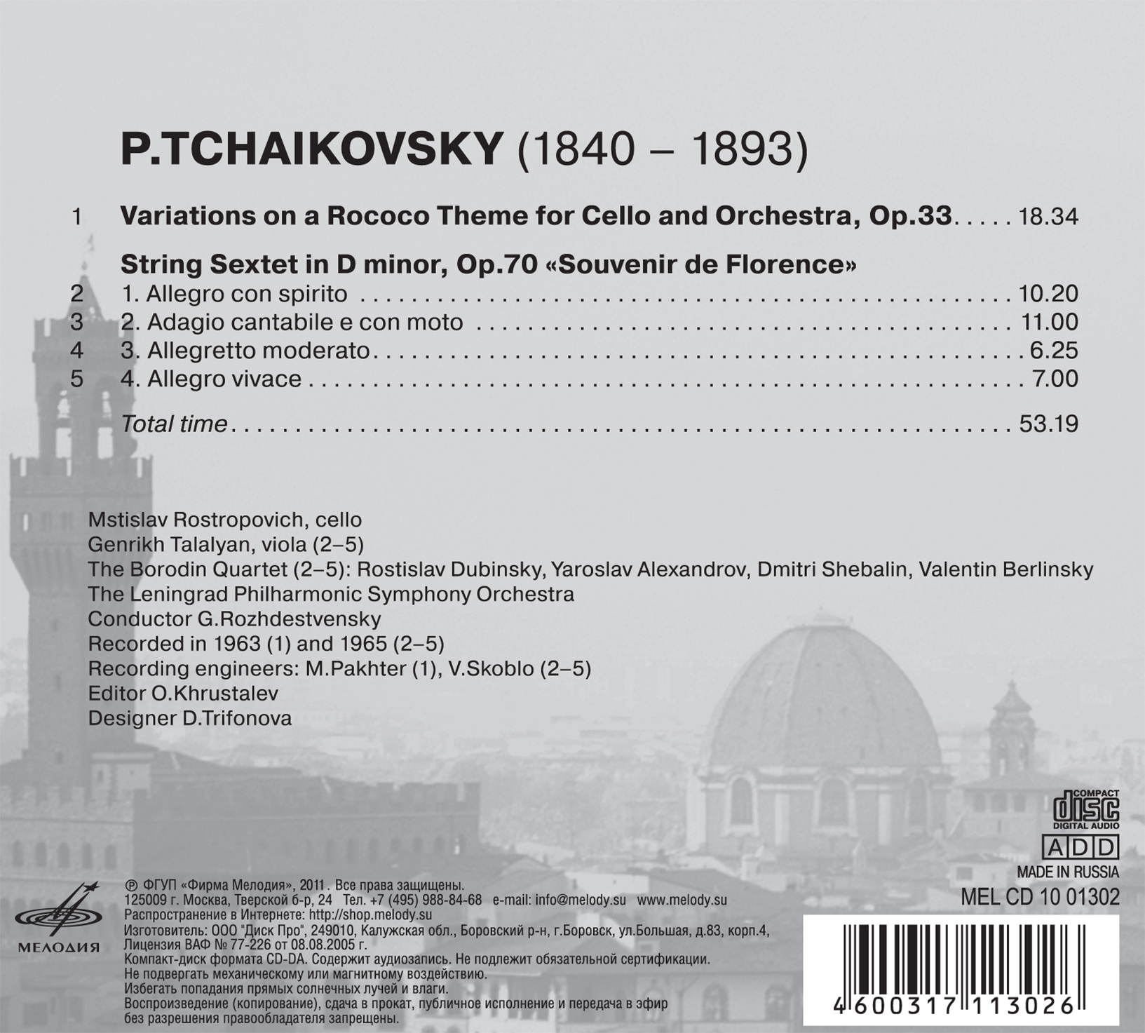 Tchaikovsky: Variations on a Rococo Theme & Souvenir De Florence