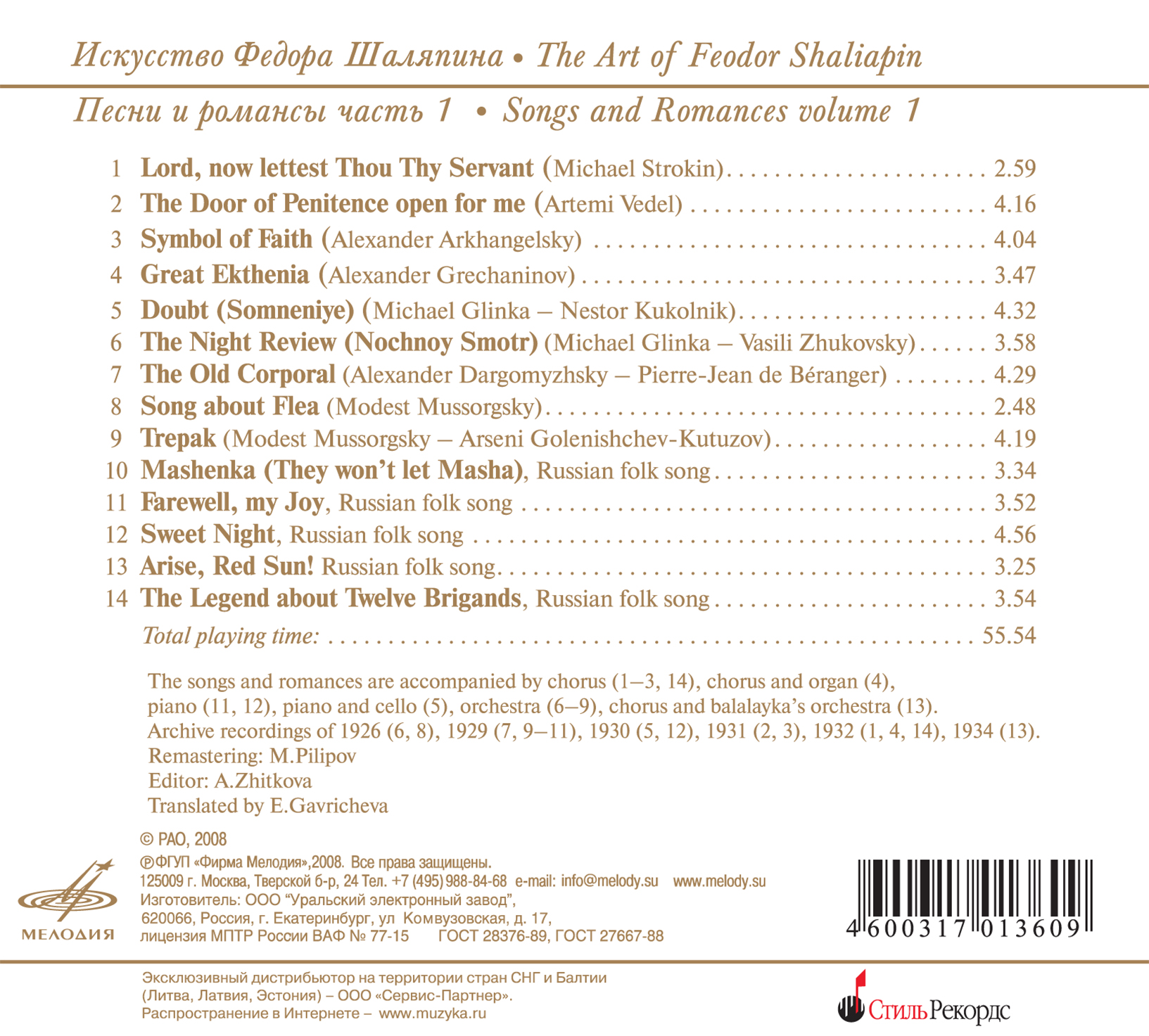 Art of Feodor Chaliapin: Songs and Romances, Vol. 1