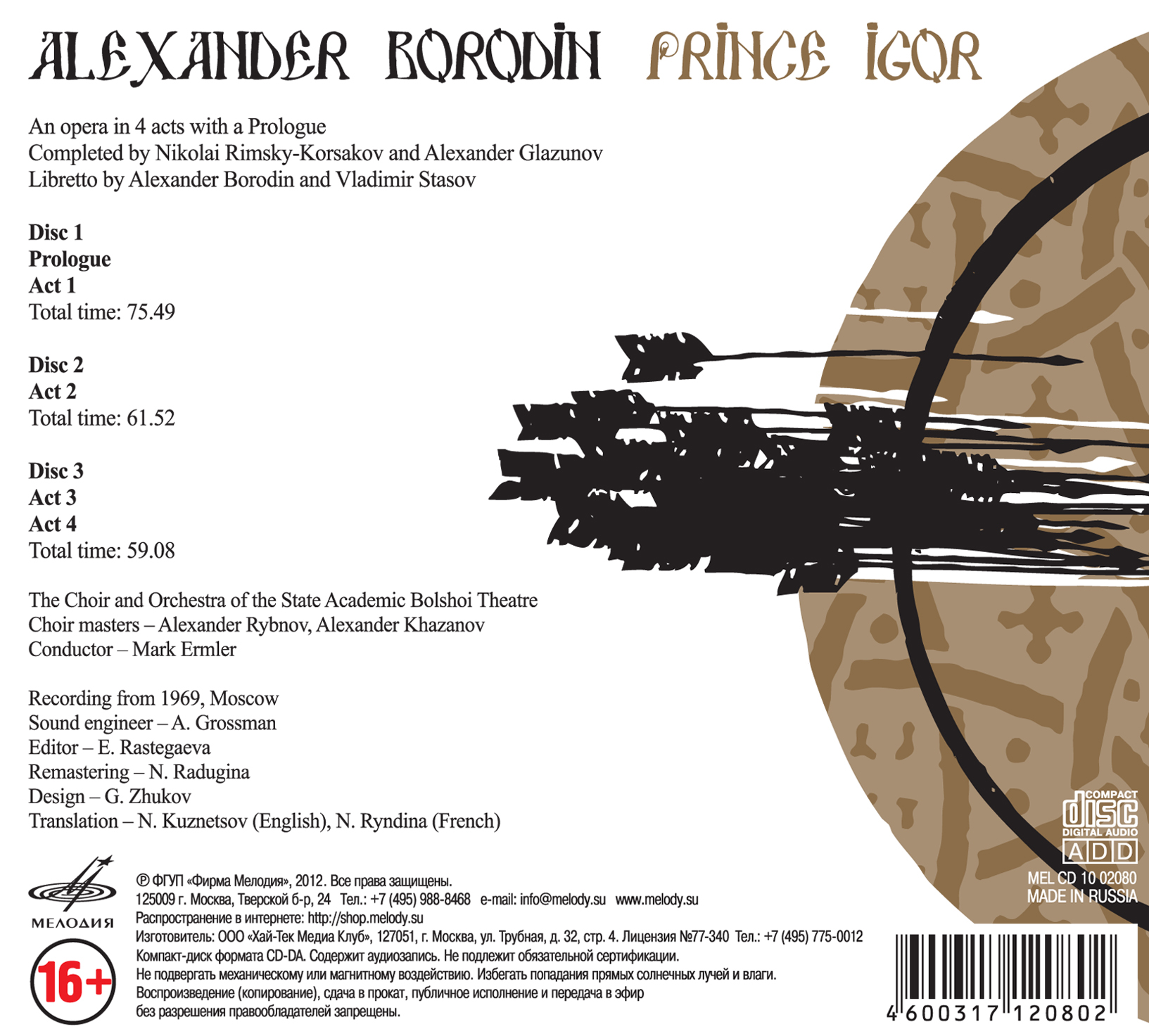 Firma Melodiya presents a complete recording of the great Russian music epic – the opera Prince Igor by Alexander Borodin.