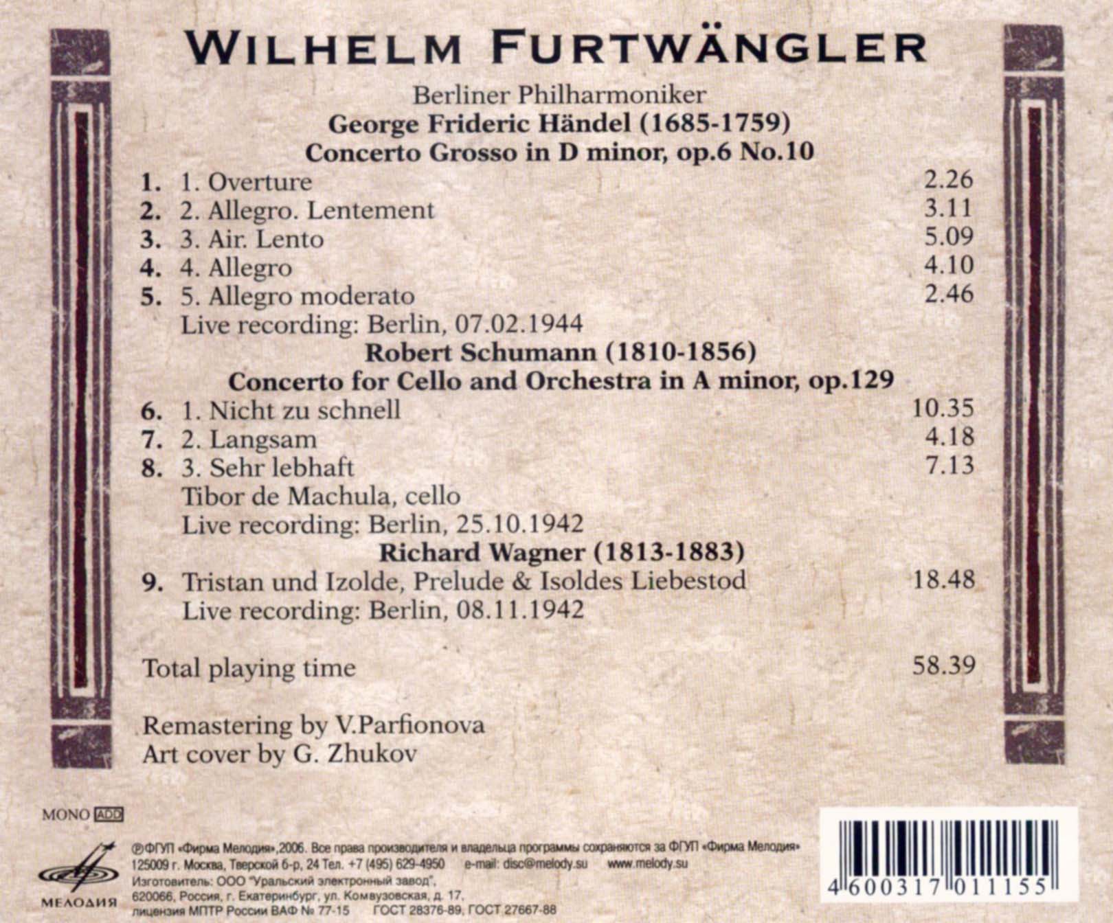 Handel: Concerto Grosso - Schumann: Cello Concerto - Wagner: Tristan Und Isolde (Live)